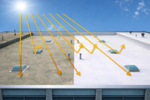 La reflectancia solar es la capacidad de una superficie para reflejar la energía del sol. Cuanto más alta sea esta reflectancia, menos calor se absorbe. Este parámetro se mide a través del RSI (Índice de Reflectancia Solar), que va de 0 (total absorción) a 100 (total reflexión). Un RSI alto significa que una cubierta puede mantenerse más fría y contribuir significativamente a reducir la temperatura del edificio y del entorno.